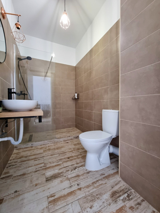 – Bucătărie complet echipată (cuptor, plită, hotă, cafetieră – lipsesc doar chef-ul și rețetele)