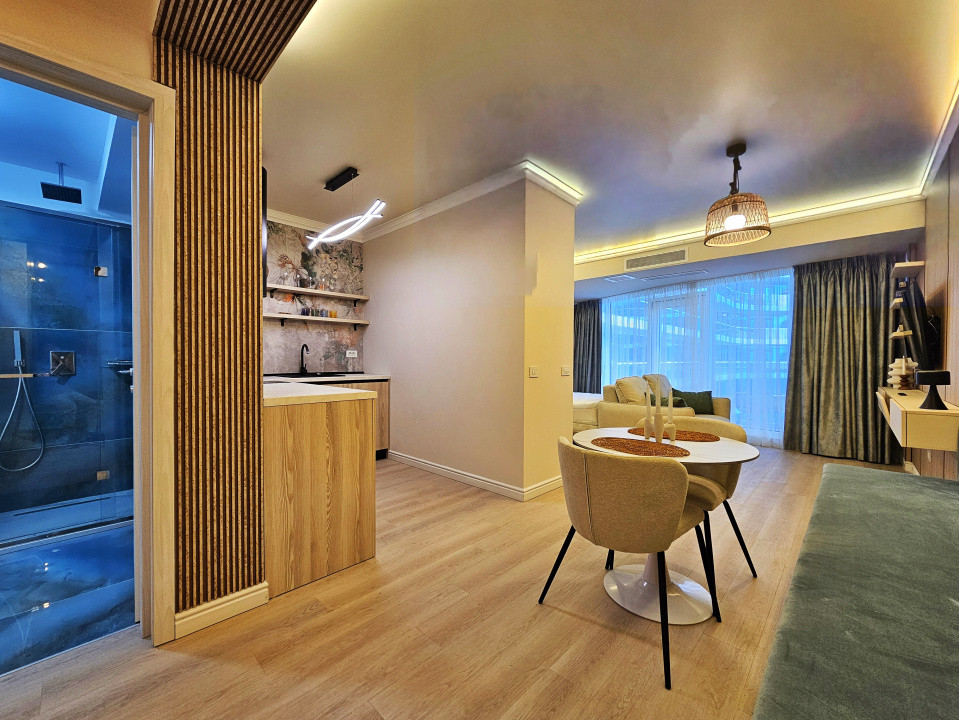 Complex rezidential cu peste 500 de apartamente in prima linie la mare, WHITE TITANIC se impune prin dimensiunile impresionante, 10.000 m2 de parcari subterane si supraterane, 2 restaurante, fitness & spa center, spatii comerciale, terase private, piscine private, plaja privata si receptie 24/7.White TITANIC îmbrățișează Marea Neagră și aduce o perspectivă unică arhitecturală și panoramică viitorilor rezidenți, fiind cea mai mare clădire mixed use de pe litoralul României iar facilitatile din viitor coroborate cu eficienta sporita fac raportul calitate-pret imbatabil si altfel garanteaza investitia imobiliara.