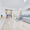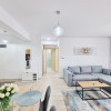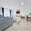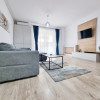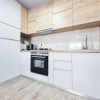 Interiorul e luminos și curat, cu un living deschis, unde canapeaua pare făcută pentru lenevit în stil mare. Bucătăria e modernă, compactă și arată de parcă te va convinge să-ți încerci norocul cu ceva mai complex decât cafeaua. Dormitorul are un aer hotelier chic, iar baia e imaculat gândită — cu o zonă de duș generoasă și finisaje geometrice cât să-ți amintești că trăiești într-un loc cu gust.