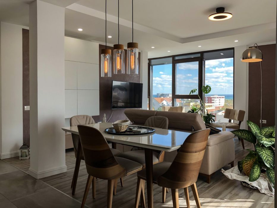 Un colț de design, o fărâmă de mare și zero compromisuri.Un colț de liniște și stil, unde priveliștea către mare îți face cu ochiul din living, iar fiecare piesă de mobilier pare aleasă cu grijă de cineva care chiar știe ce face.Apartamentul ăsta e fix ce se întâmplă când cineva pune suflet, gust și un dram de îndrăzneală în design.
