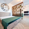 Apartamentul include un dormitor intim, o bucătărie închisă, un living spațios, organizat inteligent, cu un separeu de dining elegant și un riflaj de lemn ce delimitează zona de zi și relaxare de o zonă suplimentară de dormit, și două terase generoase, care vă permit să vă bucurați de aerul proaspăt și de peisajul natural din confortul propriei locuințe.